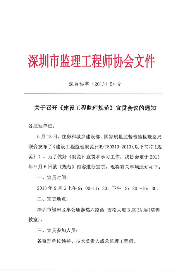 关于召开《建设工程监理规范》宣贯会议的通知