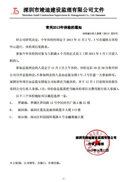 2013年体检通知