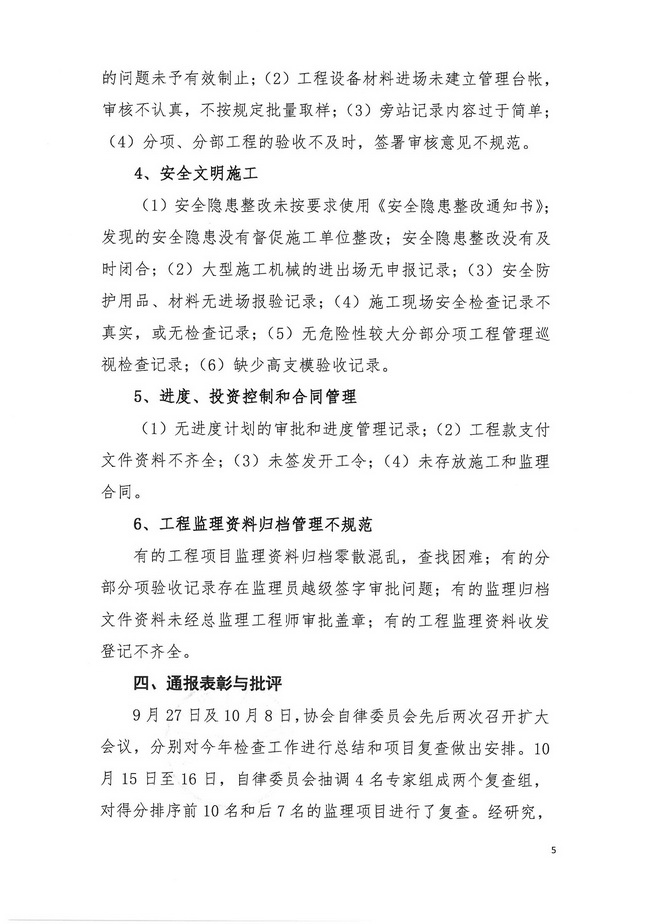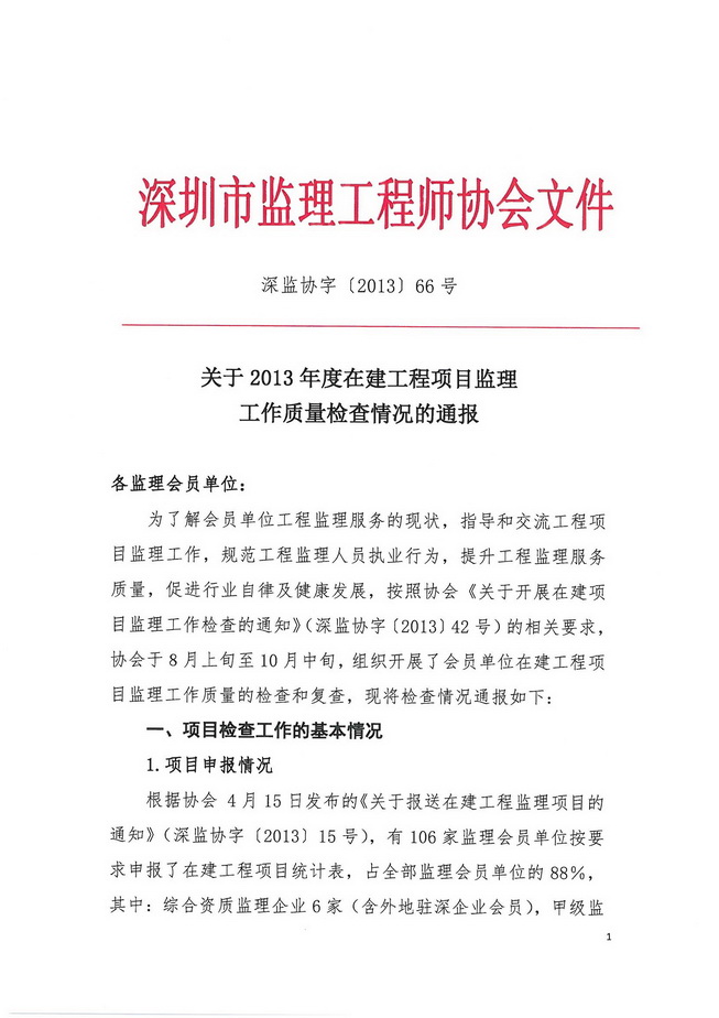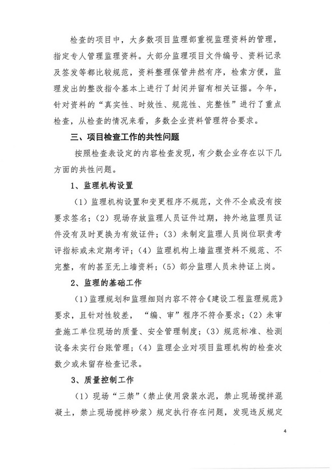 关于2013年度在建工程项目监理工作质量检查情况的通报