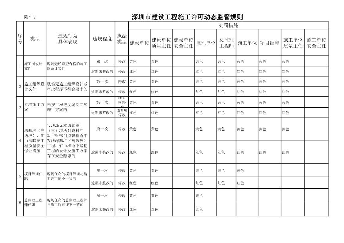 四、市、区质量安全监督机构应加强对建筑工程施工过程中质量安全保证措施的监督管理。对于不履行承诺或被监督机构发现的其他违法违规行为,市、区质量安全监督机构严格按照《深圳市建设工程施工许可动态监管规则》(详见附件)执行。对违反本通知,在责令停工整改期间擅自施工的,给予责任单位、责任人红色警示6个月。