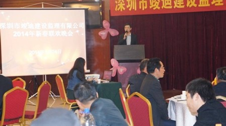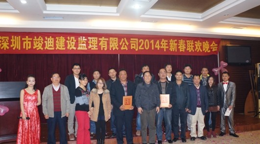 金马开岁迎新春,欢声笑语降鹏城。2014年1月24日,深圳市竣迪建设监理有限公司在深圳碧岭山庄度假村举行了简单而又隆重的2013年度表彰大会暨2014年新春联欢晚会。