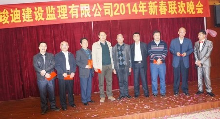 晚会开始,王平总经理做了新春致辞,回顾了2013年国际国内以及公司的发展形势,倡导全司树立信心、坚定信念,坚持创新发展。杨科如董事长分享了中国建设监理企业战略发展研讨会的最新信息,介绍我国建设监理行业与企业的定位、战略发展,以及大数据、信息化、标准化建设的探讨和论证,也对我公司的未来做了展望。刘吉华总工对2013年年终大检查情况进行了通报,对检查结果较好的项目和个人提出表扬和展示。